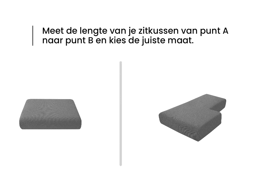 Meet de lengte van je zitkussen van punt A naar punt B en kies de juiste maat.